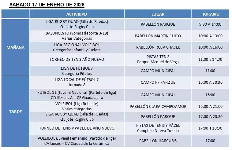Aquí el programa de deportes en Illescas para los día 17 y 18 de Enero