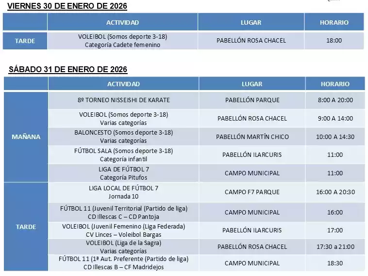 Deportes en Illescas los próximos días 30, 31 de Enero y 1 de Febrero