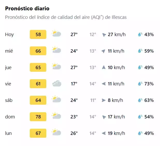 Previsiones de calidad del aire desde hoy 21 al día al lunes 27 en Illescas