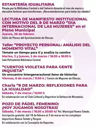 Estos son los actos que se celebran en Illescas con motivo del Día de la Mujer 2.026